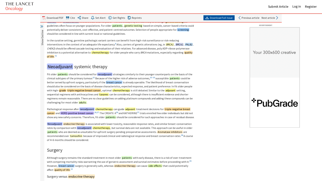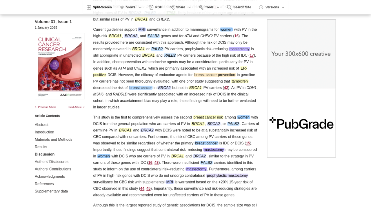- Appear next to hyper-relevant scientific articles on oncology and breast cancer.